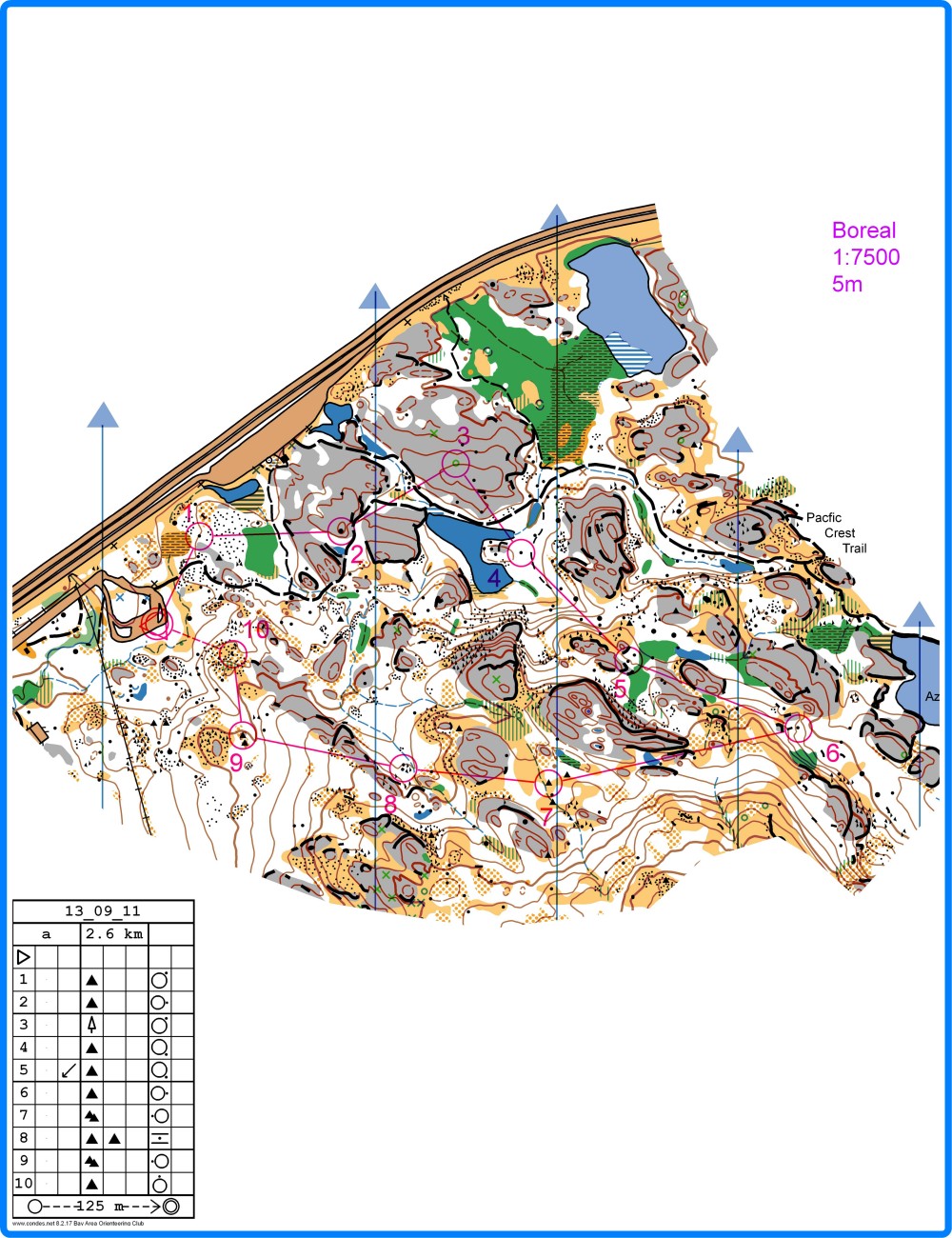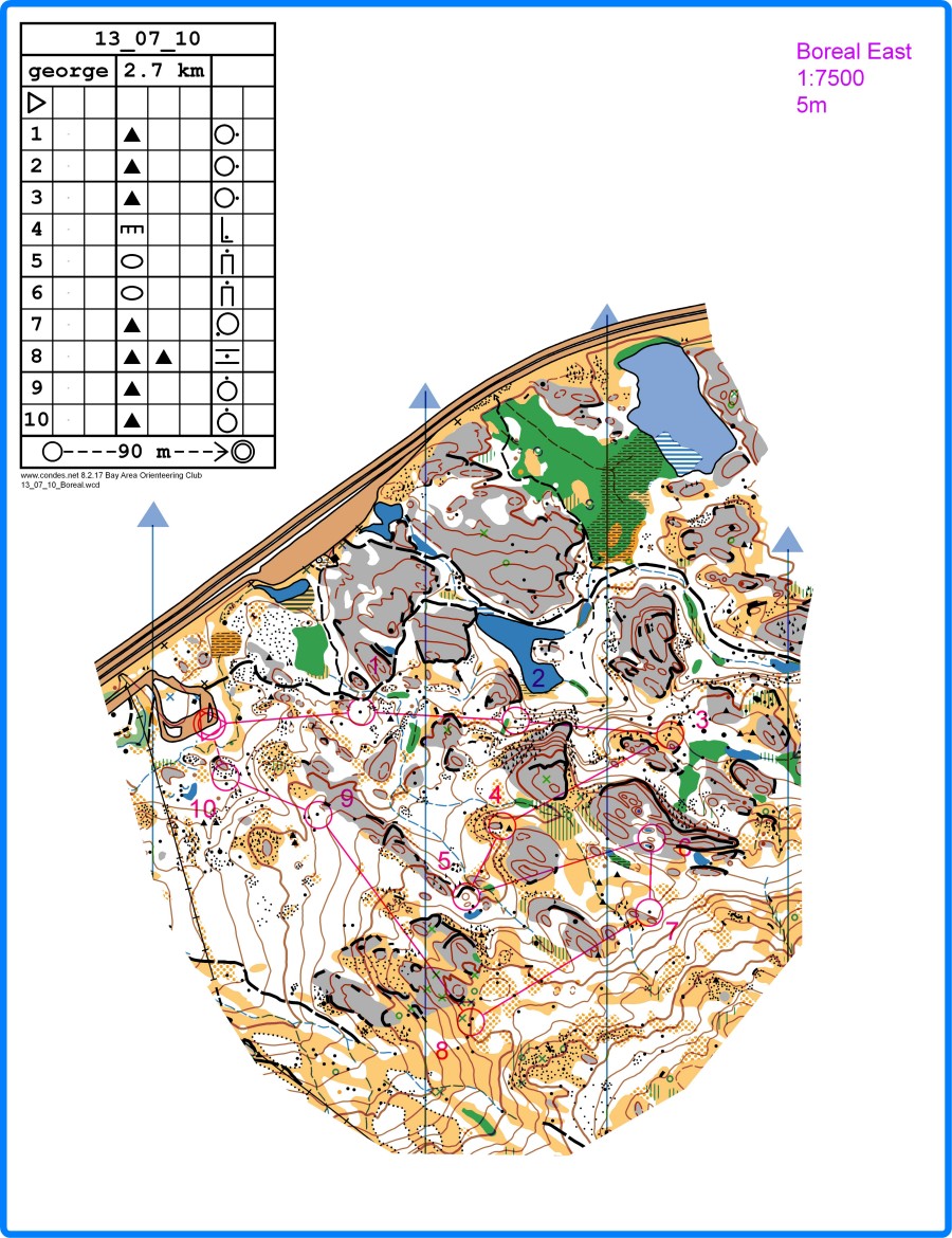 The map. July 3 - nothingEverybody's gone for the holiday, so a week off! July 10 - Race: BorealLets start on the hard stuff! 3km course at Boreal. Map: 1:7500, 5m contours.