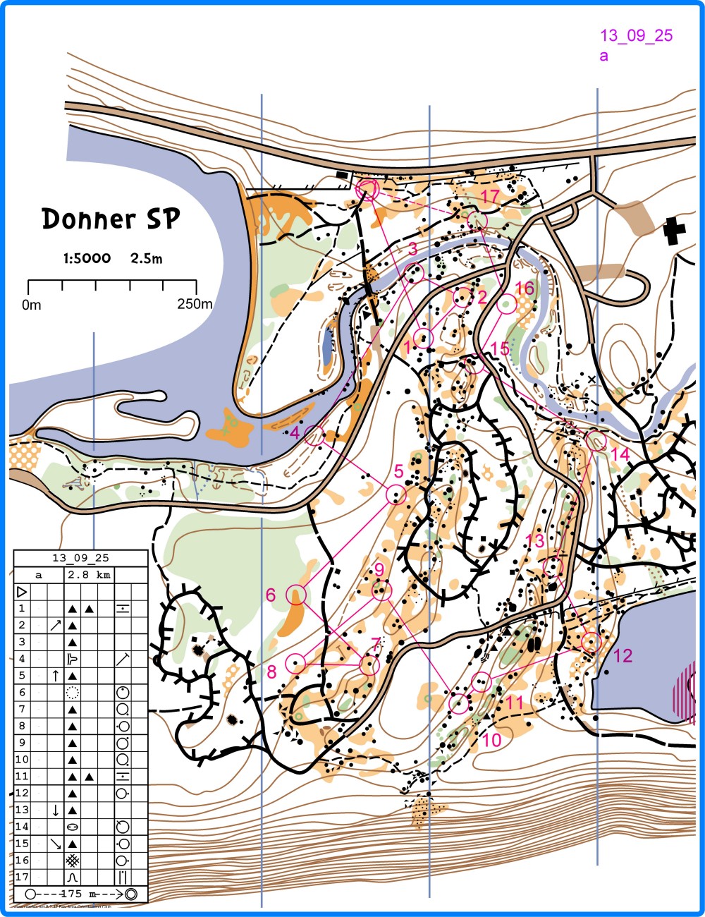 Event DetailsJune 05 - Race: Donner SPNew mapping in Donner State Park! Come check out a few new corners of the park. Park in a new spot: at the end of the Coldstream Road pavement, here. This is just before the gravel pit. Start will be from here, 6pm. Map: 1:5000, 2.5m contours. Course: 3.0km The course goes through almost all clean woods, only a few patches of scrub or thick stuff, so you'll be fine in shorts and running shoes if you want.
