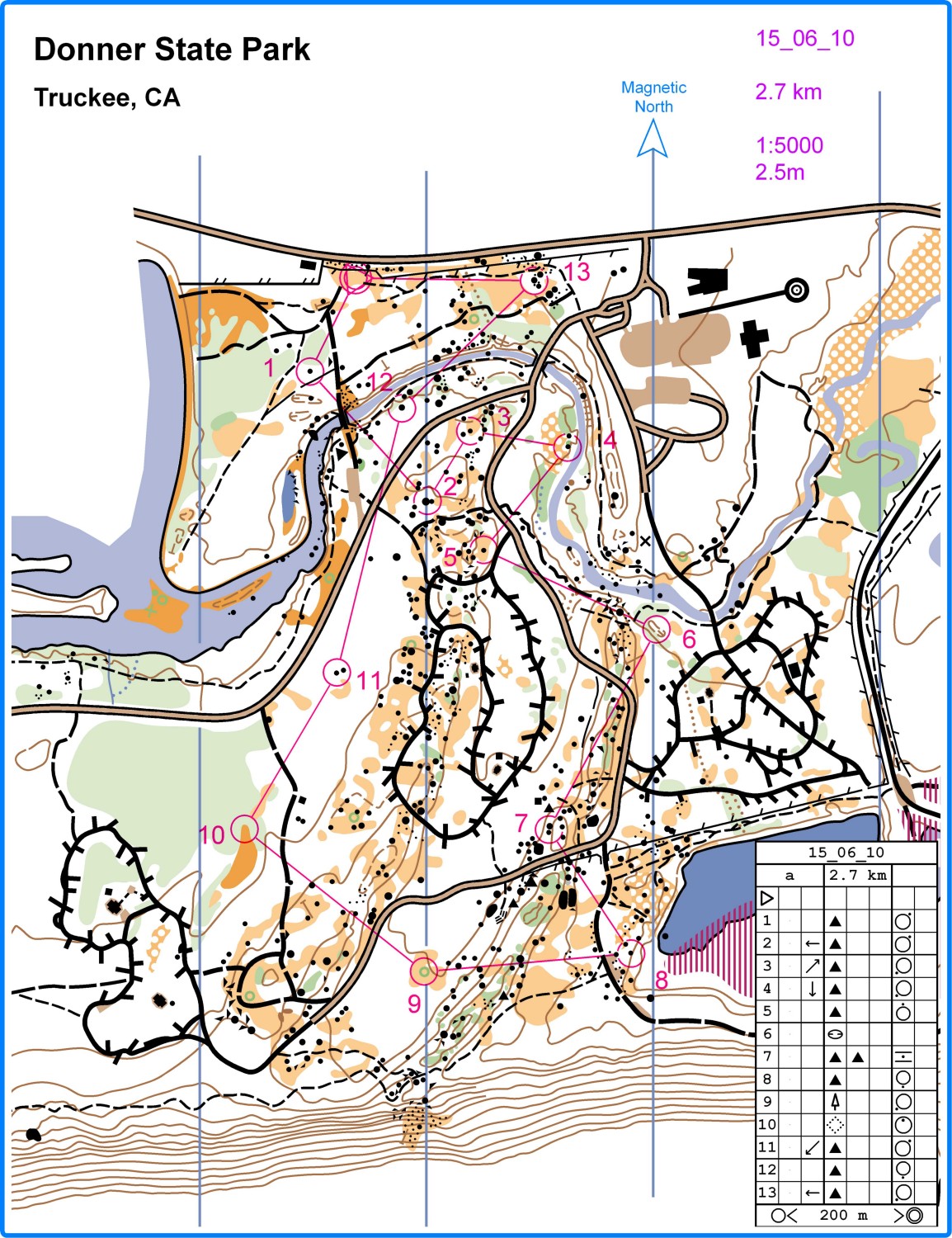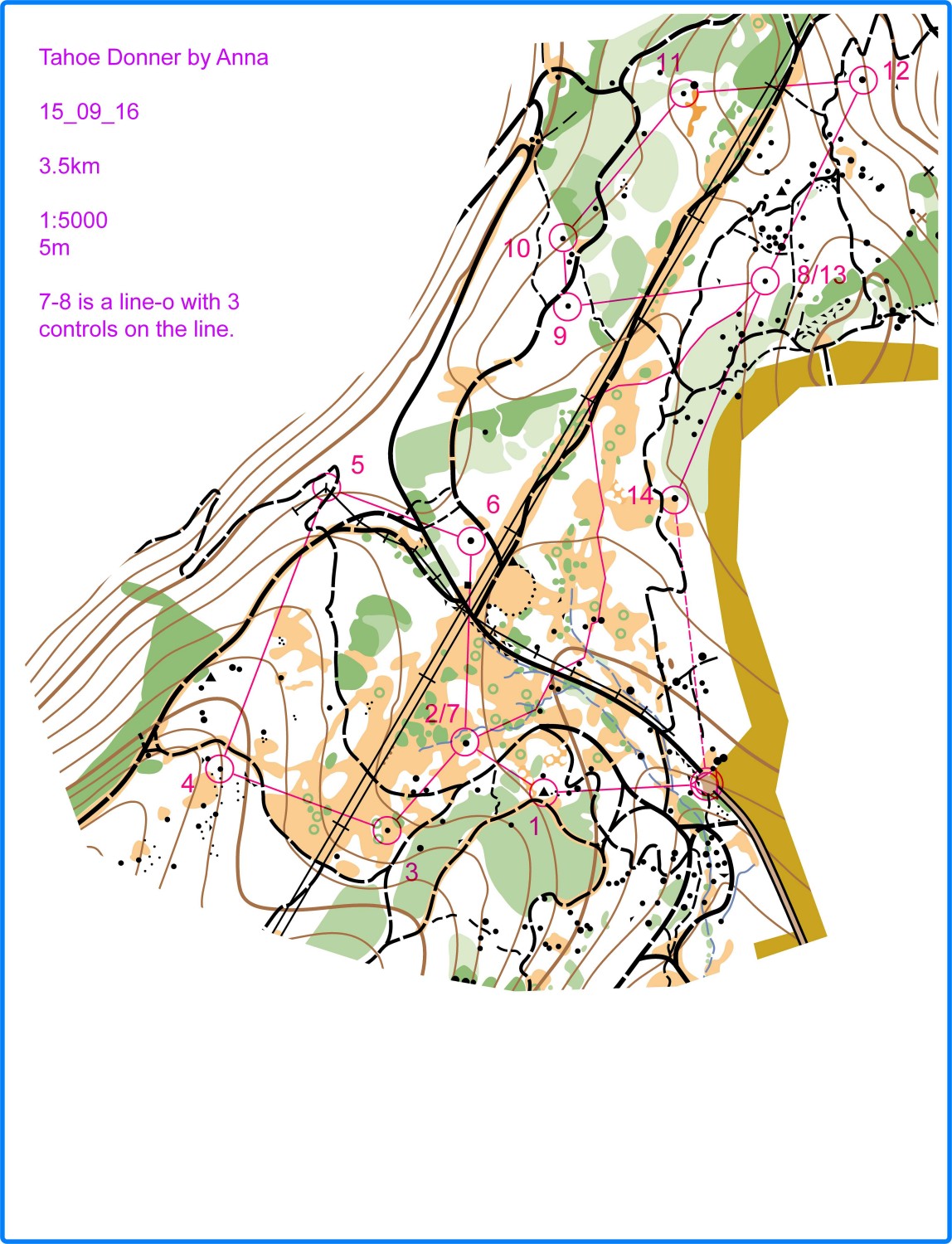 Truckee OrienteeringA racing and training club for orienteering - on foot, mtb, skis, or in adventure races. 2015 brings the fourth summer training season for Truckee. Each Wednesday evening will have a different training course set up: 30-60 minutes depending on the course. Checkpoints will be little pin flags or mini-controls, with no punches. Interval starts, 6pm. Cost is $20 for the season, for any number of trainings, to cover printing and ink costs for the maps. Information for each weeks training usually goes out by email a few days before. Registration is by lunch time each event day - just send me an email that says you're coming, so I know how many maps to print. If I don't hear from you, I probably won't have a map for you. Any Questions? Want to get on the email list for the weekly training announcements? email me. We also have a facebook group that gets some traffic now and then if you're into that. Greg DetailsJune 3 - Tahoe DonnerThe season starts with an easy sprint at TD. Starts will be at 6pm from the end of Alder Creek Road, here. Here was the map. June 10 - Donner LakeQuick sprint around Donner SP, starting from the wooden fence at the east end: here. New improved contours on the map! 6pm. The rain cleared and it was actually pretty nice out there. June 17 - Donner LakeBack at Donner Lake, but from the Coldstream parking lot here. This is just before the gravel pit. Start will be from here, 6pm. June 24 - ProsserSprint course in Prosser, across from the OHV parking on 89: here. Starts at 6pm. We can happily report that there is not any less sagebrush out there this year. Map. July 1 - Donner LakeIts Canada Day, so Carol is going to set us a Canadian flag shaped line-o. Looks like the best place to do this will be Donner Lake, so we're headed back there this week, from the Coldstream parking lot: here. 6pm. July 8 - BorealAnna is setting a training course up at Boreal. This is tricky! One of the most technical maps around Truckee. Not sure how the mosquitos are up there these days, but probably bad. Starts at 6pm from the PCT trailhead here at the Boreal Exit of 80. Start will be from that parking lot. Awesome as always up there. map July 15 - Prosser MTB-OMountain bike orienteering course in Prosser, set by Anna! Starts across from the OHV parking on 89: here. 6pm. Great course, with lots of route options. map July 22 - ProsserBlake and Colombe are setting sprint courses in Prosser, across from the OHV parking on 89: here. 6pm. Fun course on the new contour section: map July 29 - Tahoe DonnerSprints at TD. Starts will be at 6pm from the end of Alder Creek Road, here. August 5 - nothingAugust 12 - nothingAugust 19 - nothingAugust 26 - nothingEverybody's out of town, so we're on break for a few weeks. September 2 - Donner LakeShort sprint around Donner SP, starting from the wooden fence at the east end: here. Course will be about 3k, starts around 6pm. The map. September 9 - FiberboardCarol W has set a course up on Fiberboard. Directions: 267 to the top of Brockway Summit, then west on the paved road (Mt Watson rd) to the dirt pulloff here. Starts at 6pm, course is 3.7km, with a cutoff to make it 3km if you want. The map. September 16 - Tahoe DonnerAnna is going to set us a sprint on the Tahoe Donner map. Starts from the end of Alder Creek road, 6pm. Two butterflies and a line-o!. |
